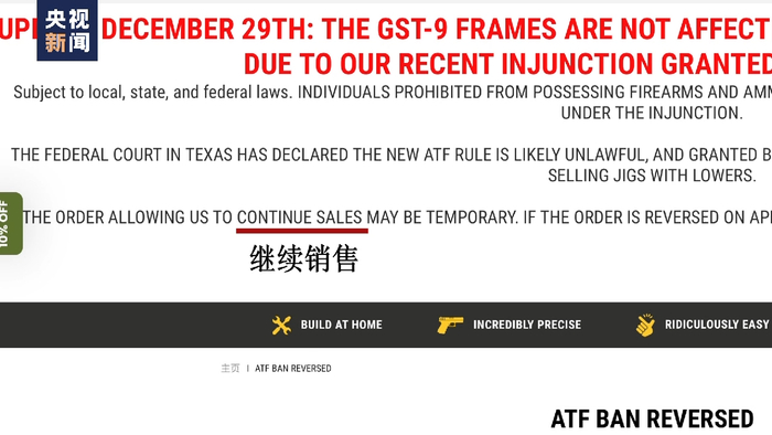 2022年4月,美国司法部出台新规,将“幽灵枪”套件列为联邦法律认定的武器,然而这项规定在实际执行中举步维艰。2023年3月,得州一联邦法官以新规涉嫌违法为由,暂时叫停了规定。包括“分布式防御”在内的多家“幽灵枪”公司即刻恢复了销售。