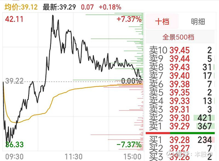 5、次日开盘,获利盘疯狂抛售,砸到绿7%,但恐慌情绪仅仅维持了10分钟。9:40之后,股价暴涨,狂拉14%,拉到红7%,之后红盘震荡一天,尾盘收微红