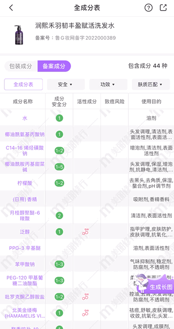 而润熙禾洗发水,所有成分都是绿色非常安全的,连橙色中等风险都没有!!!