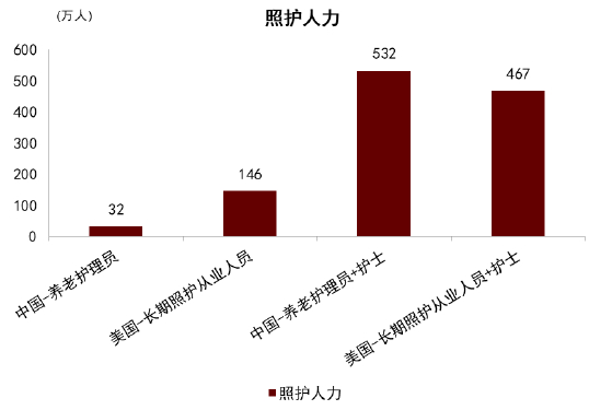 图表17:中国照护从业人员、考虑护士后的护理总人力供给仍有较大提升空间