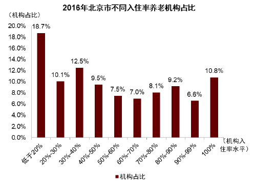 图表18:中国养老机构入住率逐年走低,但机构间入住率存在较大差异,我们认为这主要是优质机构供给短缺所致
