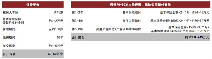 图表22:真正具有支付能力的长期护理险保费高、赔付杠杆率低,而赔付场景单一,导致销售难度大