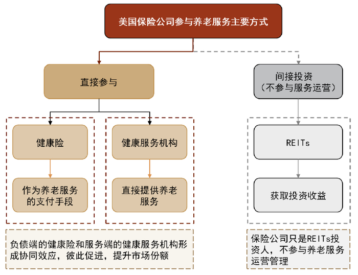 图表5:美国保险公司可在负债端和服务端直接参与养老服务,也可通过投资REITs间接获取养老服务行业投资收益