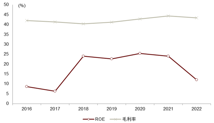 图表9:Amedisys毛利率维持在40%以上,2017-2021年ROE超20%