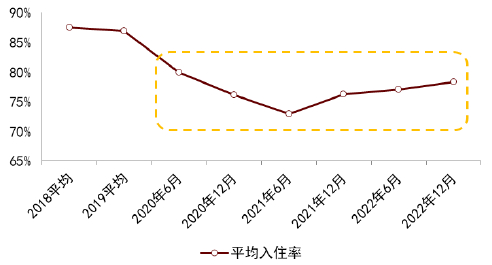注:2020年及以后入住率为近三月平均入住率资料来源:公司公告,中金公司研究部