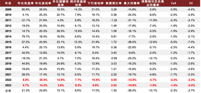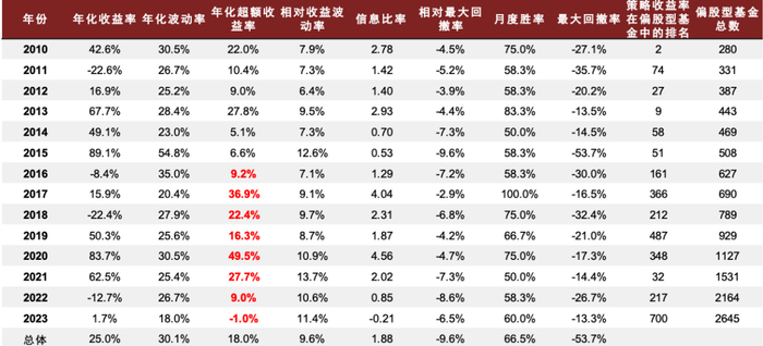 图表31:小盘成长风格综合选股策略分年度收益统计