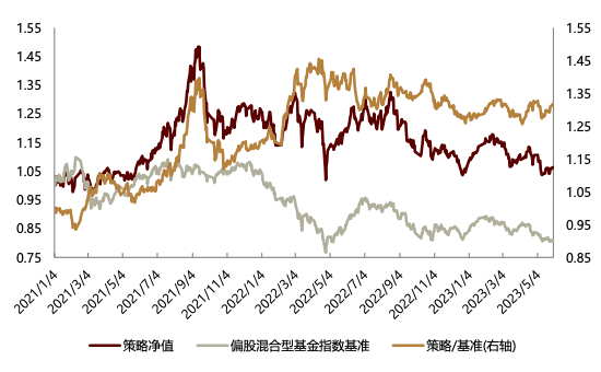 样本外(2021-06-01至2023-05-31)组合收益率-10.3%,同期行业等权基准收益率-6.8%,超额收益率-3.5%。