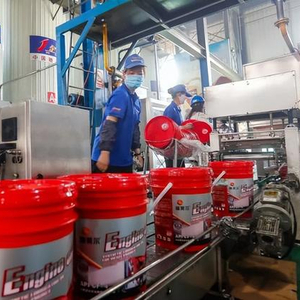 在新疆金雪驰科技股份有限公司的生产线,工人正在查看润滑油产品罐装情况。资料图片