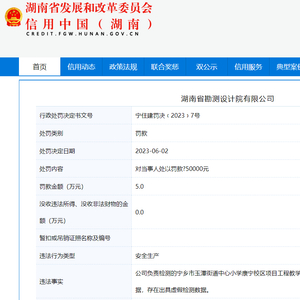 出具虚假检测数据 湖南省勘测设计院有限公司被罚5万元