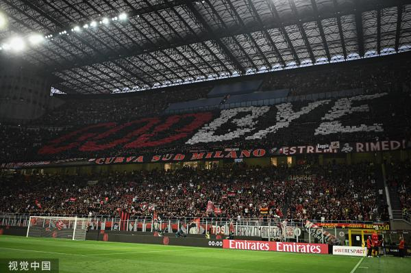 米兰球迷打出标语:“GODBYE”(上帝再见)。