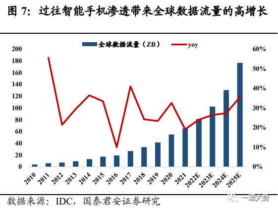 算力升级是支撑虚拟世界内容创作与真实交互的保障。虚拟世界需要强大的图像实时渲染能力、计算和存储海量数据资源,在传统的终端渲染模式下,画面分辨率和游戏流畅度受个人计算机GPU渲染能力的限制,同时终端服务器承载能力受限,难以支撑大规模用户同时在线,这意味着头显交互设备的出现将进一步增加对云计算和边缘计算的应用需求。其中云计算能将终端渲染逐步迁移至云端,基于规模效应摊低运算成本,提升服务器使用效率,提升虚拟世界的可进入性。而边缘计算则更能满足实时数据分析需求、缓解中心云的计算负载,同时减少主网络阻塞、降低传输成本。在此之下,算力芯片、光模块、服务器及IDC厂商等均有望同步受益。