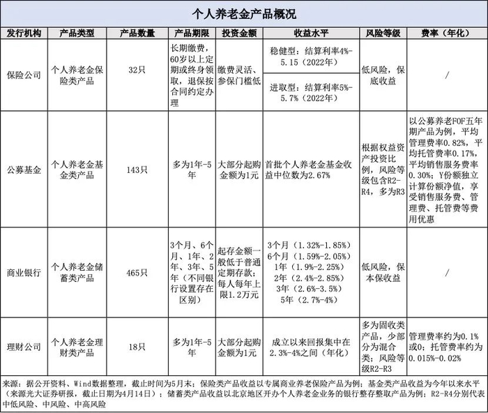与之不同,个人养老金基金类与理财类产品则不保本。截至5月末,被纳入名单的这两类产品设立时间均不长,总体来看,收益尚未与上述两类产品形成差异化优势;不过部分产品业绩表现较好。
