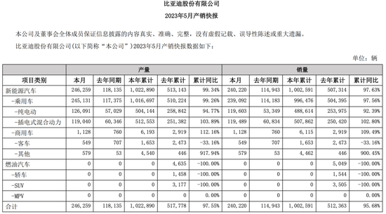 作为国内乃至全球最大的新能源汽车制造商,比亚迪新能源乘用车5月累计销量为239092辆,同比增长109.4%。需要注意的是,比亚迪公布的是批发销量,且涵盖比亚迪、腾势两大品牌。