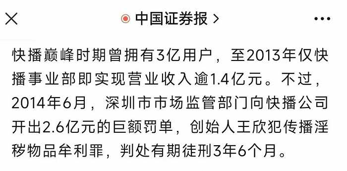 公开信息显示,2014年4月,据群众举报,快播因涉嫌传播淫秽信息,被公安机关调查。同年6月,深圳市市场监管局正式对快播公司送达《行政处罚决定书》。8月,快播创始人王欣在逃往境外110天后被抓捕归案,由相关国家移交中国警方。