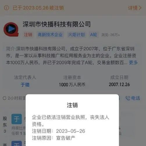 据天眼查App最新的数据显示:深圳市快播科技有限公司于2023年5月26日发生了工商变更,企业的经营状态为注销,注销原因是扎心的四个大字:宣告破产。承载了80后90后们的青春印记和网吧情怀的快播,时代巨头轰然倒塌。