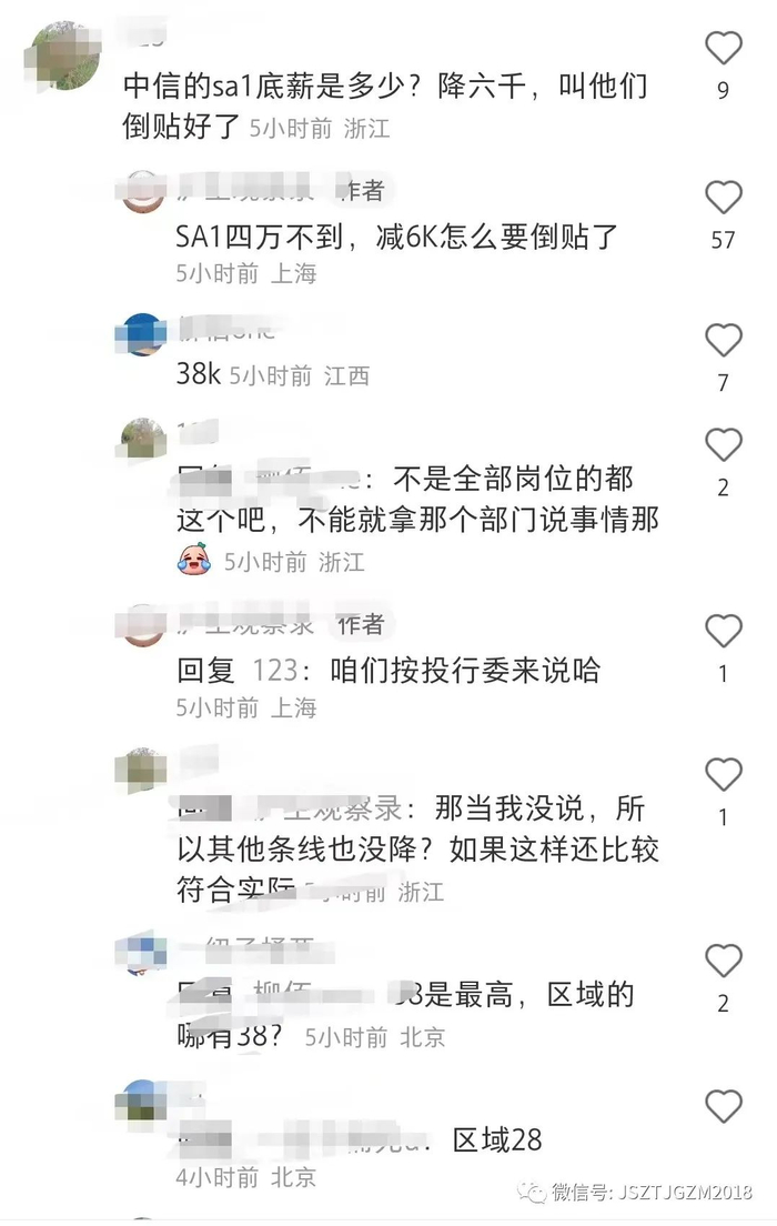 中信的SA1降6k,有人说他们倒贴了,但BASE还是高的,根据网友消息,中信SA1的base高达40k,这意味着降薪后base依然在28k到38k之间。