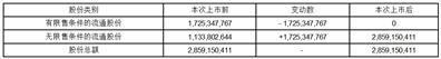 截至本公告出具之日,公司总股本为2,859,150,411股,其中有限售条件流通股为1,725,347,767股,无限售条件流通股为1,133,802,644股。