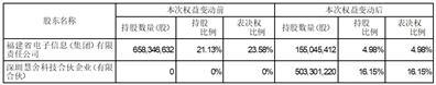 1、本次权益变动完成后,公司控股股东将变更为慧舍科技,实际控制人将变更为李兴龙。本次权益变动前后,福建省电子信息集团和慧舍科技持股情况如下: