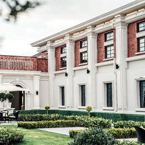 温润阳光下的江畔,林立着红砖白墙的复古建筑群,高耸的圆拱门,文艺复兴气息的罗马柱,欧式花园里的喷泉广场,坐下来喝一杯下午茶,仿佛穿越到《唐顿庄园》的故事中。