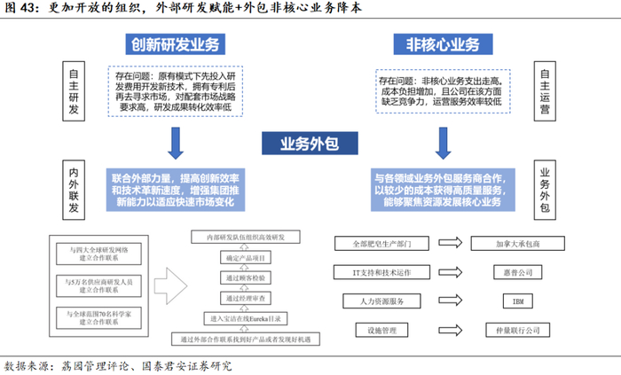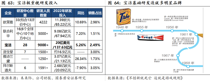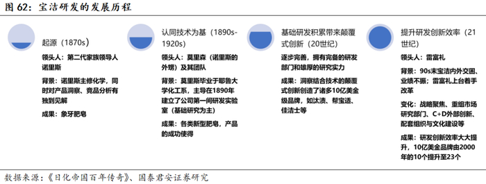 洞察驱动产品创新,利于提高新品成功率和研发效率。尽管宝洁具备强大的基础研发实力,但与市场洞察的结合以及创新项目的风险管理平衡是其持续增长的核心,特别是雷富礼时代将宝洁的创新模式由技术驱动转变为消费者拉动,将“消费者是老板”提到了新的高度。在探讨研发实力时,市场通常将研发与基础研发划等号,但我们认为,评价消费品的研发最重要的是洞察;而在电商、社媒为主的数字化时代,对消费者洞察的工具更多、反应更敏锐,将消费者洞察上升至战略高度、配合创新体系构建等组织管理的支撑,国货将会真正走向品牌化、集团化的路径。