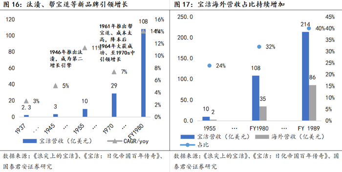 对于日化品类,成本领先是较为重要的战略,宝洁的生产制造降本能力也在多个产品中起到了重要作用。典型案例包括:1)象牙香皂诞生时利润较薄、需要生产端较大的规模效应,宝洁在1880s兴建新工厂,产能扩张的同时机械化系统化流程大幅提升,带动宝洁从手工作坊式生产向大规模生产转变。2)宝洁的生产降本在整个纸制品事业部发展(后为婴儿、女性、家庭护理事业部)起到了重大作用,其中最具代表性的是帮宝适纸尿裤的诞生。宝洁开发的一次性纸尿裤帮宝适为了取代传统纸尿裤,在材料、工艺上都进行了改良,成本较高,导致消费者购买力难以支持,同时高昂的价格使得帮宝适只能在药店销售、渠道体量较小难以产生规模效应降本,陷入负循环。为了解决制造问题,宝洁经过多次生产工艺改良、削减原料及制造流程成本,但仍无法使帮宝适成本降至理想情况。最终宝洁工程师开发出了能高速组装纸尿裤的连续流程机器,最终使得帮宝适成本降至渠道及终端消费者均可负担的水平,上市后大获成功。