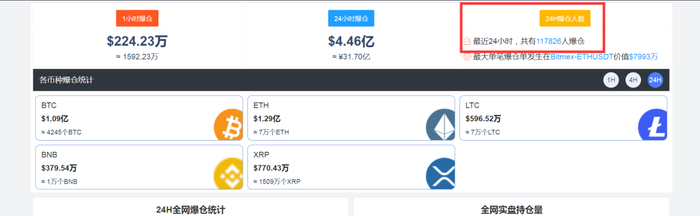 据公开数据显示,包括比特币在内的数字货币24小时爆仓高达4.48亿美元(约合人民币31.78亿元),共有118029人爆仓。
