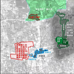 祥符荡规划片区与西塘镇和水乡客厅核心区区位关系 制图 赵忞 底图来源百度卫星图
