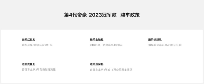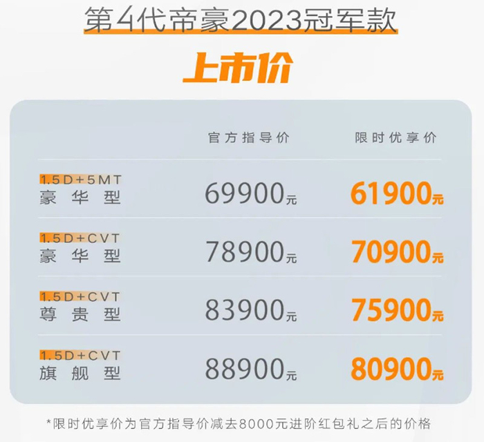 售价6.99万元起 吉利第4代帝豪2023冠军款上市