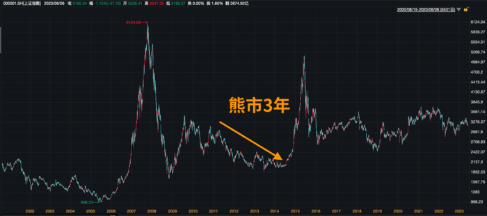 目前我们处于2000年以来的第6轮熊市中的第三年,我们很难确切的预测这轮熊市什么时候结束,但能确定的是,这轮熊市一定会结束,然后开启下一轮的牛熊周期,这是由市场本身的周期决定的。