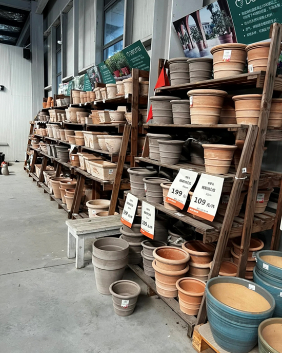 并且,她向记者反映,“花卉多以户外大苗为主,并不适合阳台党,虽然店内品牌大多是进口的,比如帝罗马花盆、elho、爱丽丝、花彩师等等,甚至有进口的石头,但和网店卖的基本差不多,很多园艺杂货的款式也都有些过时,并且很多东西都已经积灰……”