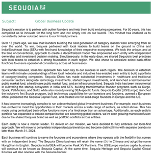 然而时至今日,继续运营这样一个去中心化的全球投资业务,正变得越来越困难。例如共享后台已经从优势变为阻力,各个地区实体的投资中也有不少公司成为世界级的企业,但不同团队共用的红杉品牌正令市场愈发困惑。