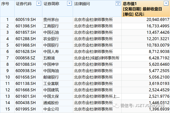 金杜的牛逼之处在于,A股有200多家公司都是金杜担任法律顾问,像贵州茅台、工商银行、中国石油、中金公司等比比皆是。但是,此前金杜还因为乐视财务造假而被立案调查。
