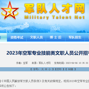 2023年空军专业技能类文职人员公开招考工作最终解释权归空军政治工作部文职人员局。
