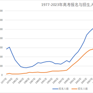 与20年前的613万相比,高考人数大幅翻倍;与10年前的912万相比,高考人数也大增40%以上。