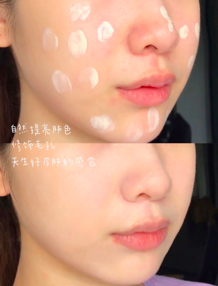 上脸后很明显看到均匀了肤色、修饰了毛孔。