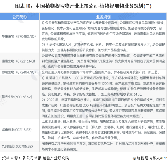 5、植物提取物产业上市公司核心业务规划对比