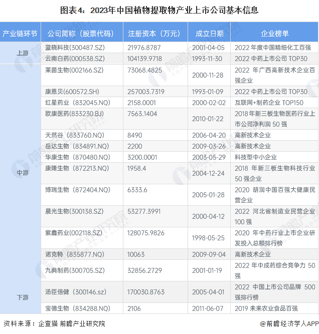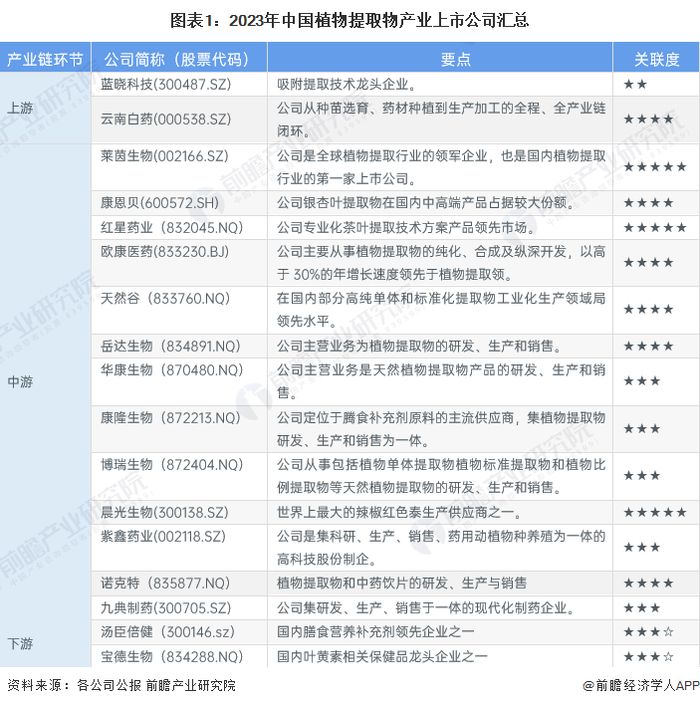 1、植物提取物产业上市公司汇总