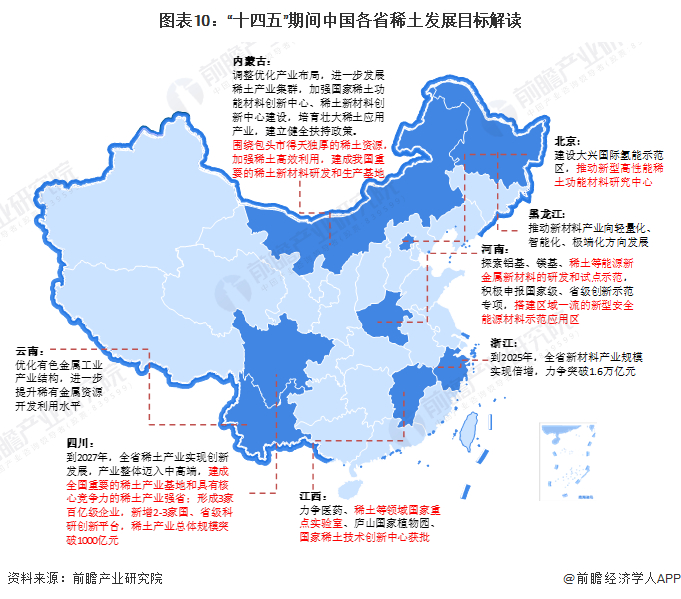 根据各省出台的有关稀土行业发展政策,前瞻大致梳理了各省份稀土行业的建设目标或规划: