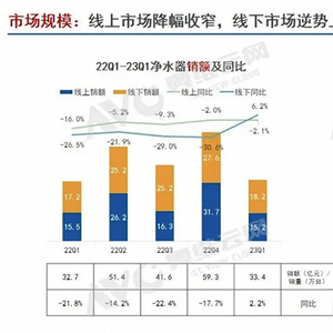 根据奥维云网的数据,2023年一季度,净水器销量为136万台,市场销售额为33.4亿元,同比增长2.2%。另据前瞻产业研究院预测,2025年我国净水器行业市场零售规模将接近500亿元,发展前景良好。