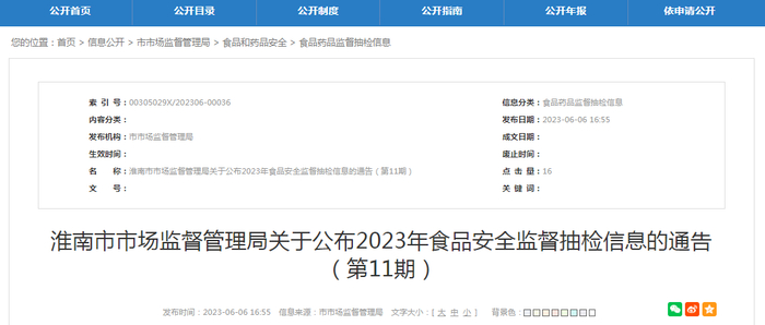 中国质量新闻网讯 近日,安徽省淮南市市场监督管理局发布2023年食品安全监督抽检信息(2023年第11期)。