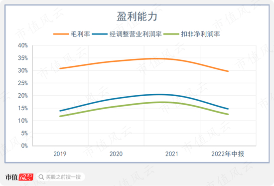 乔锋智能的盈利水平跟随周期波动,2021年毛利率、经调整营业利润率、扣非净利率分别是34.4%、20.1%、17.2%,去年上半年有一定下降(公司尚未披露去年完整财务数据)。