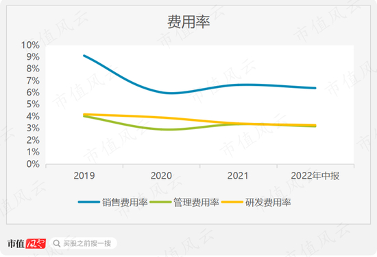 乔锋智能的销售费用率在6%左右,几乎是研发或管理费用率的2倍。