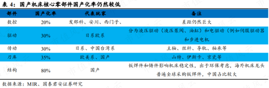 公司自制的核心零部件主要是车床主轴、动力刀塔,钻工加工中心主轴自制比例正在提升。这个国产化水平只能说一般。