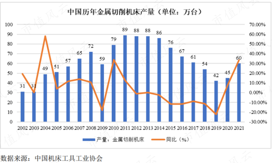 机床是一个周期性明显的行业,2019-2021年,中国金属切削机床行业处于明显的上升期,产量复合年化增速20%。