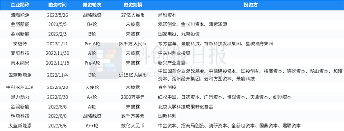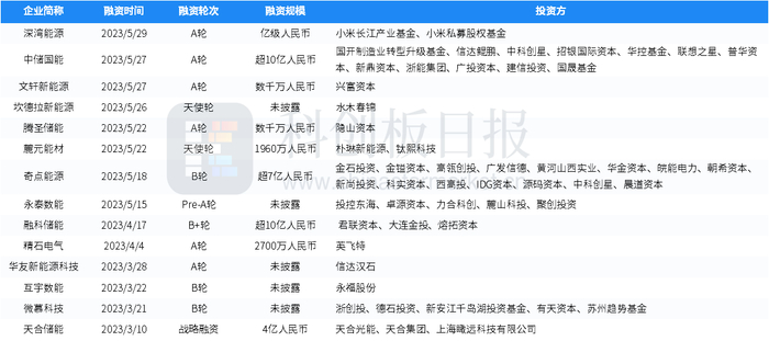 据创投通数据,近一年来,国内有62家储能领域企业获得融资,部分案例如下表所示: