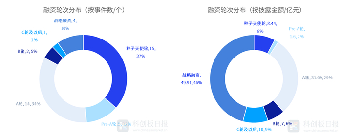 从各轮次投资金额来看,战略融资事件整体融资数额最多,约为49.91亿元。