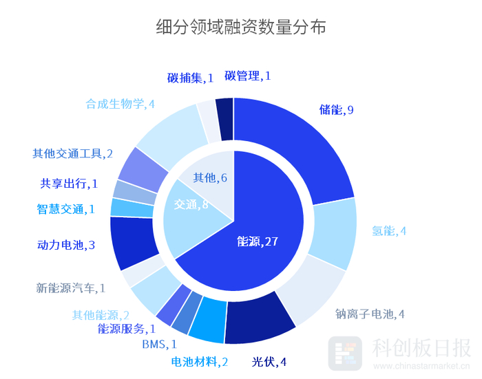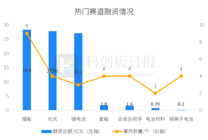 从融资总额来看,热门赛道中储能赛道披露的融资总额最多,约为28.4亿元;从事固态锂电池生产研发商——清陶能源完成由上汽集团旗下尚颀资本的27亿元的独家融资,为5月碳中和领域融资数额最大的融资事件。