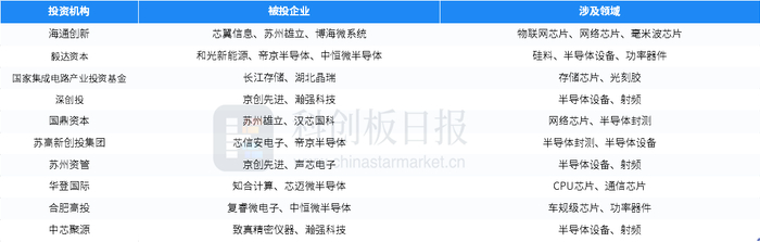 还包括国开制造业转型升级基金、广投资本、合肥创新投资、深创投、深圳高新投、苏高新创投集团等国有背景投资平台及政府引导基金。