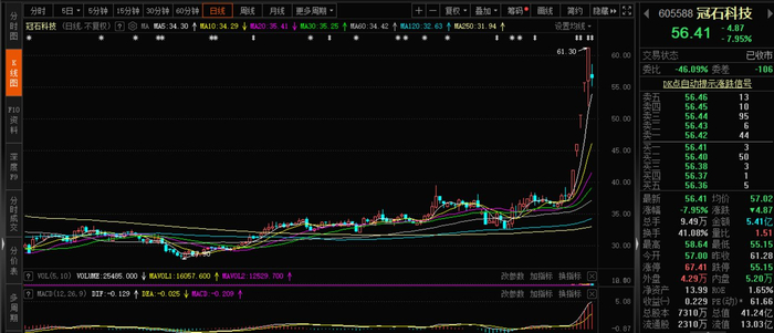 拉长时间线看,近期冠石科技强势上涨,5月31日-6月6日连续收获五个涨停板,区间累计涨超60%。