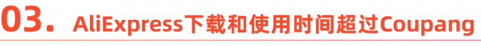 福布斯韩国联合大数据平台IGA Works的分析显示,在AliExpress速卖通和Coupang这两个主要电商平台拥有的250万名交叉用户中,AliExpress的人均使用时间为2.69小时,而Coupang为2.3小时。